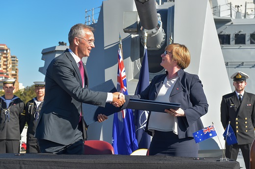 En août 2019, l'Australie et l'OTAN ont signé un nouvel accord de partenariat lors de la visite historique du secrétaire général de l'OTAN, Jens Stoltenberg, en Australie. Cet accord renforcera l'engagement politique et stratégique entre l'Australie et l'OTAN, y compris dans la région indo-pacifique.